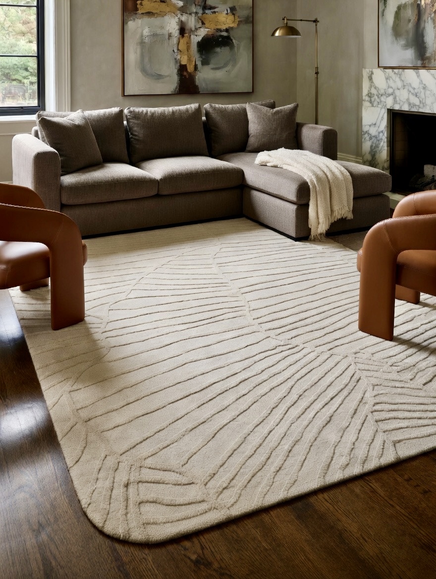 Shown with 3/4″ cut pile background and 1″ raised detail. Background and detail available in pile heights from 1/2″ to 1 1/2″.
